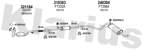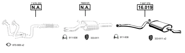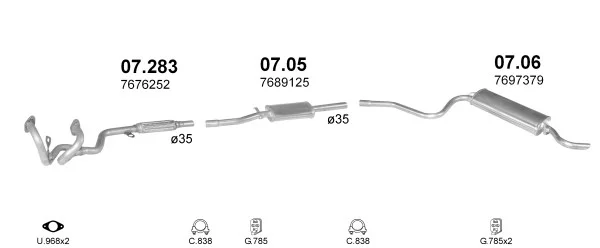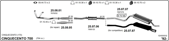 FIAT CINQUECENTO (170_) 0.7 (170AA) - Výfukový systém - kompletní od 12/1991 do 1/1996, 704 ccm, 23 kW, 31 hp, 170 A.000, Šikmá zadní část