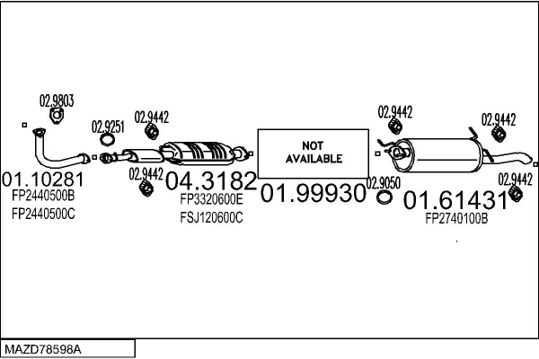MAZDA 626 V Station Wagon (GW) 1.8 (GW8W) - Výfukový systém - kompletní od 1/2000 do 10/2002, 1840 ccm, 74 kW, 100 hp, FP9A, kombi