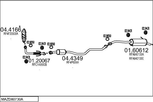 MAZDA PREMACY (CP) 2.0 TD - Výfukový systém - kompletní od 10/1999 do 7/2000, 1998 ccm, 66 kW, 90 hp, RF3F, velkoprostorová limuzína