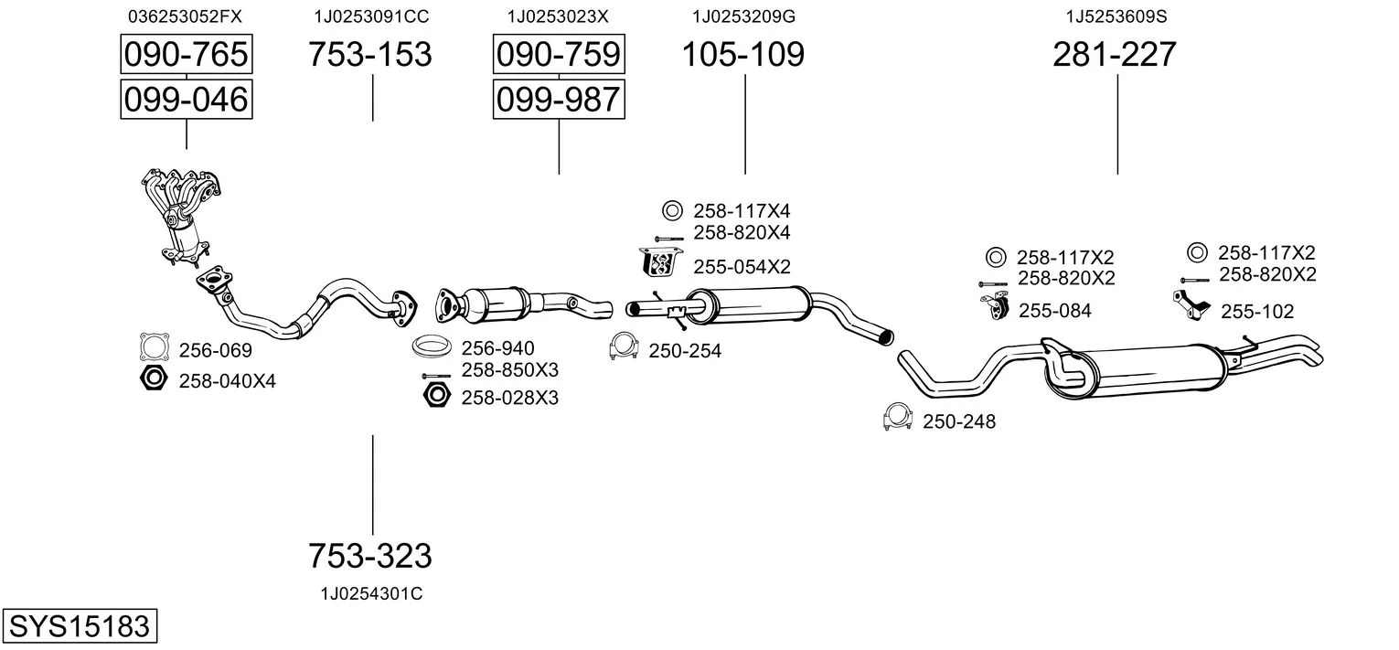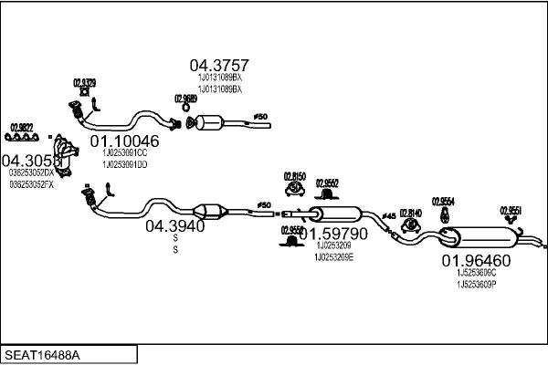 SEAT TOLEDO II (1M2) 1.4 16V - Výfukový systém - kompletní od 1/2000 do 5/2002, 1390 ccm, 55 kW, 75 hp, AHW, APE, AXP, BCA, limuzína