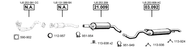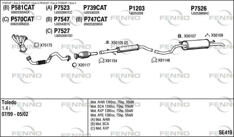 SEAT TOLEDO II (1M2) 1.4 16V - Výfukový systém - kompletní od 1/2000 do 5/2002, 1390 ccm, 55 kW, 75 hp, AHW, APE, AXP, BCA, limuzína