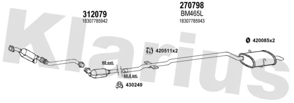 BMW 5 (E39) 520 d - Výfukový systém - kompletní od 2/2000 do 6/2003, 1951 ccm, 100 kW, 136 hp, M47 D20 (204D1), limuzína