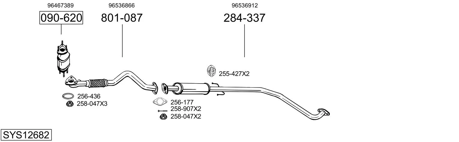 CHEVROLET AVEO / KALOS limuzína (T250, T255) 1.2 - Výfukový systém - kompletní od 1/2008, 1206 ccm, 62 kW, 84 hp, LMU, limuzína