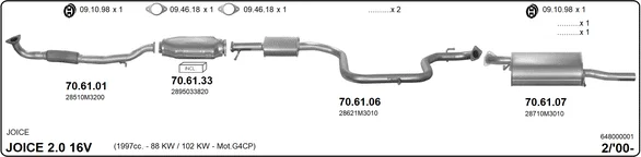 KIA JOICE (MTE1P) 2.0 - Výfukový systém - kompletní od 2/2000 do 9/2003, 1997 ccm, 102 kW, 139 hp, G4CP, velkoprostorová limuzína
