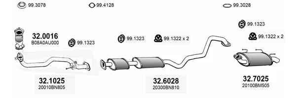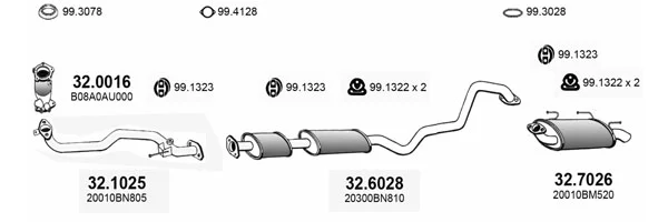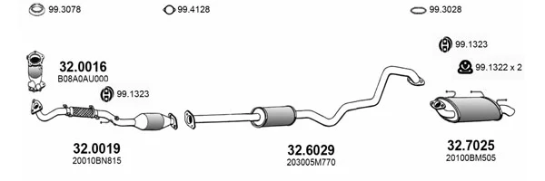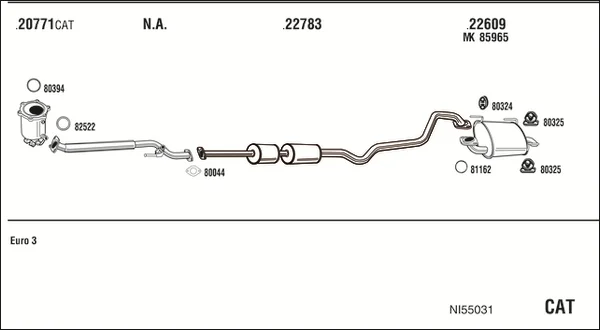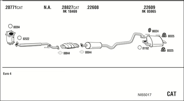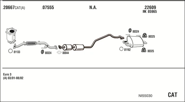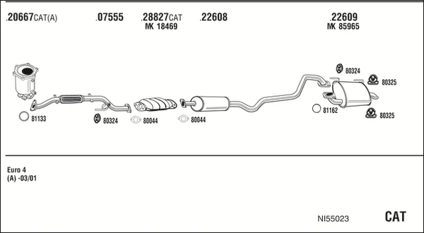 NISSAN ALMERA II Hatchback (N16) 1.8 - Výfukový systém - kompletní od 1/2000 do 11/2002, 1769 ccm, 84 kW, 114 hp, QG18DE, Šikmá zadní část