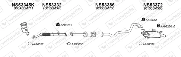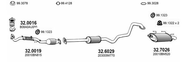 NISSAN ALMERA II Hatchback (N16) 1.8 - Výfukový systém - kompletní od 1/2000 do 11/2002, 1769 ccm, 84 kW, 114 hp, QG18DE, Šikmá zadní část
