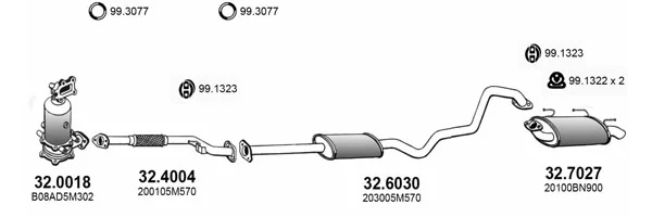 NISSAN ALMERA II Hatchback (N16) 2.2 Di - Výfukový systém - kompletní od 3/2000 do 4/2003, 2184 ccm, 81 kW, 110 hp, YD22DDT, Šikmá zadní část