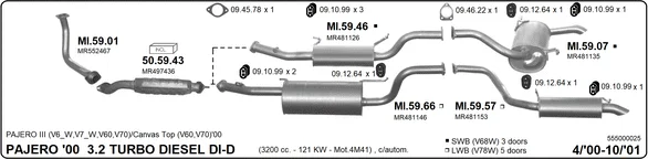 MITSUBISHI PAJERO III Canvas Top (V6_W, V7_W) 3.2 DI-D (V68W, V78W) - Výfukový systém - kompletní od 4/2000 do 12/2006, 3200 ccm, 121 kW, 165 hp, 4M41, otevřený terenní vůz