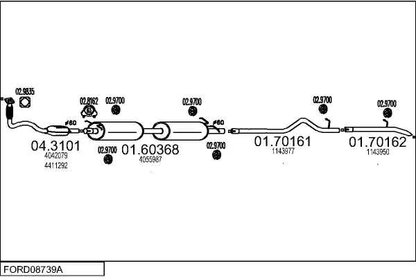 FORD TRANSIT autobus (FD_ _, FB_ _, FS_ _, FZ_ _, FC_ _) 2.4 DI RWD (F_B_, F_C_, F_A_) - Výfukový systém - kompletní od 1/2000 do 5/2006, 2402 ccm, 88 kW, 120 hp, D4FA, autobus