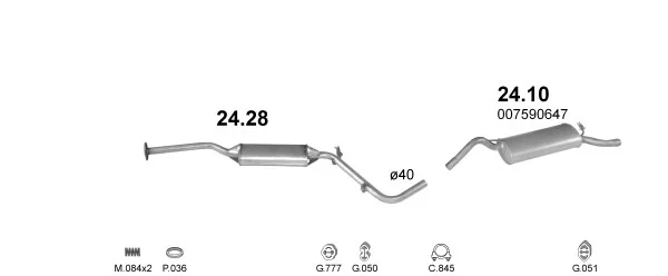 SKODA FELICIA I (6U1) 1.3 - Výfukový systém - kompletní od 10/1994 do 3/1998, 1289 ccm, 43 kW, 58 hp, 135L, AMJ, Šikmá zadní část