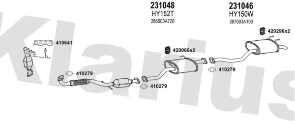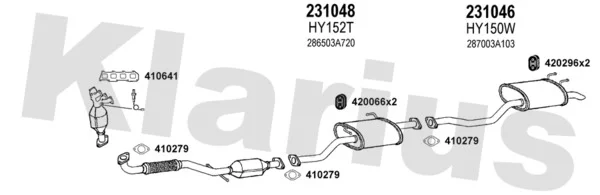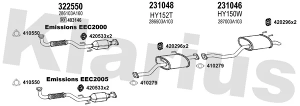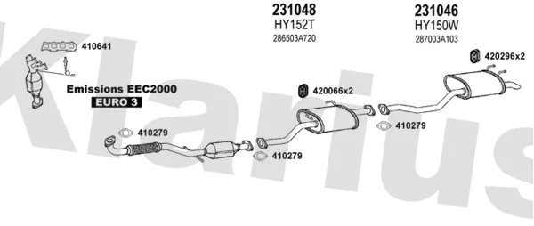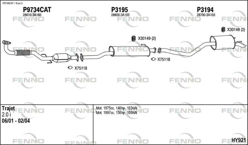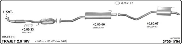 HYUNDAI TRAJET (FO) 2.0 - Výfukový systém - kompletní od 3/2000 do 7/2008, 1997 ccm, 100 kW, 136 hp, G4JP, velkoprostorová limuzína