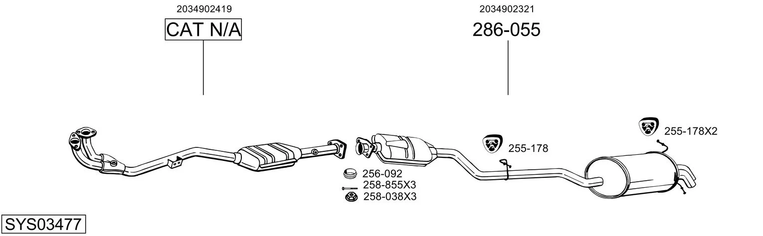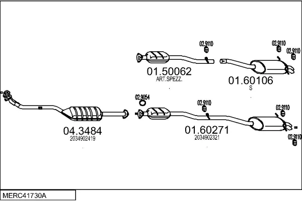 MERCEDES-BENZ C-CLASS (W203) C 180 (203.035) - Výfukový systém - kompletní od 10/2000 do 5/2002, 1998 ccm, 95 kW, 129 hp, M 111.951, limuzína