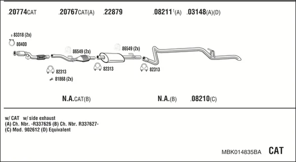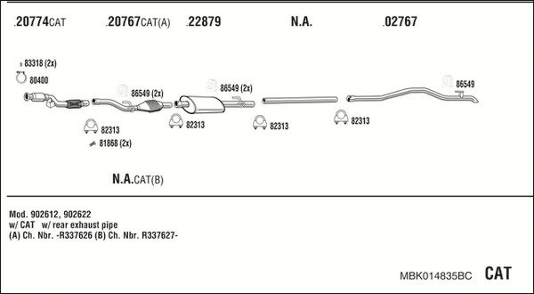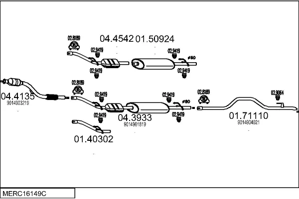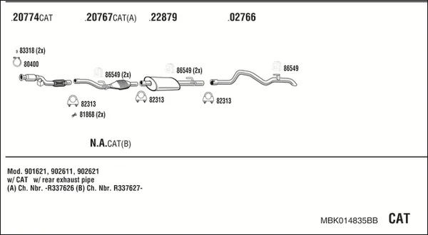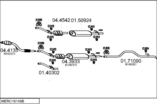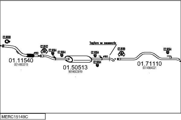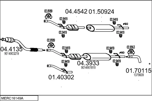 MERCEDES-BENZ SPRINTER 2-t valník/podvozek (B901, B902) 213 CDI (901.621, 902.611, 902.612, 902.621, 902.622) - Výfukový systém - kompletní od 4/2000 do 5/2006, 2148 ccm, 95 kW, 129 hp, OM 611.981, valník/podvozek