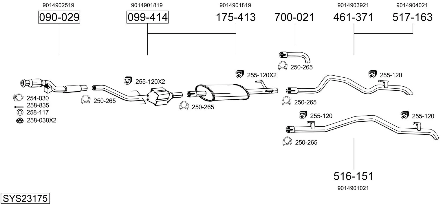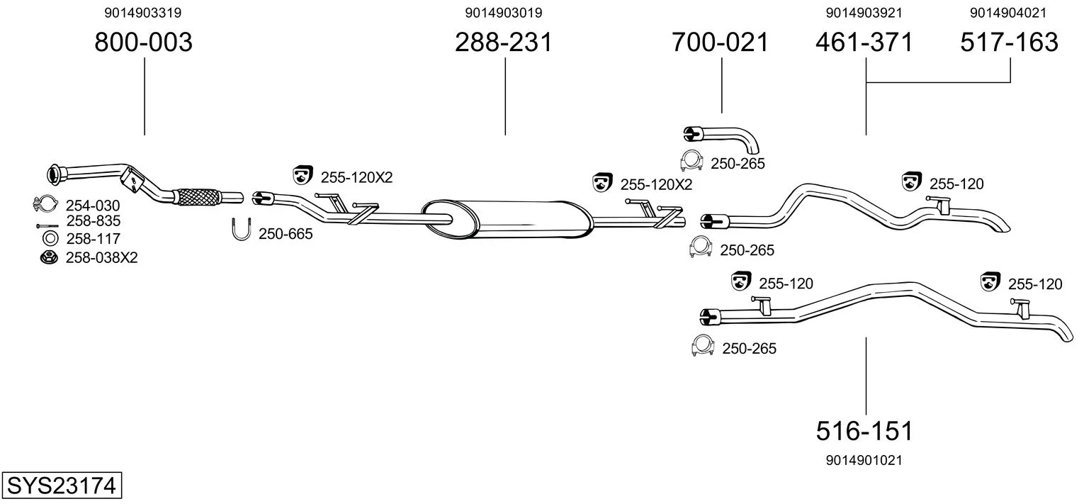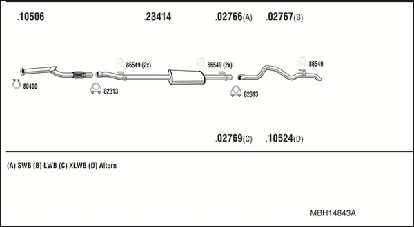 MERCEDES-BENZ SPRINTER 3-t valník/podvozek (B903) 313 CDI (903.611, 903.612, 903.621, 903.622) - Výfukový systém - kompletní od 4/2000 do 5/2006, 2148 ccm, 95 kW, 129 hp, OM 611.981, valník/podvozek