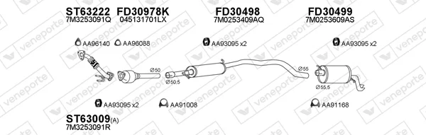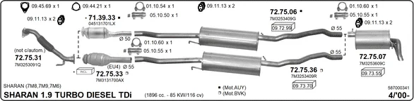 VW SHARAN (7M8, 7M9, 7M6) 1.9 TDI - Výfukový systém - kompletní od 4/2000 do 3/2010, 1896 ccm, 85 kW, 115 hp, AUY, BVK, velkoprostorová limuzína