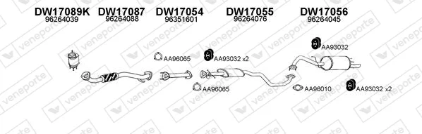 DAEWOO TACUMA (U100) 2.0 - Výfukový systém - kompletní od 9/2000, 1998 ccm, 94 kW, 128 hp, C20SED, T20SED, velkoprostorová limuzína