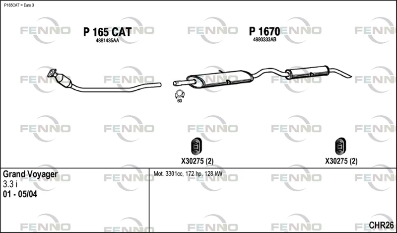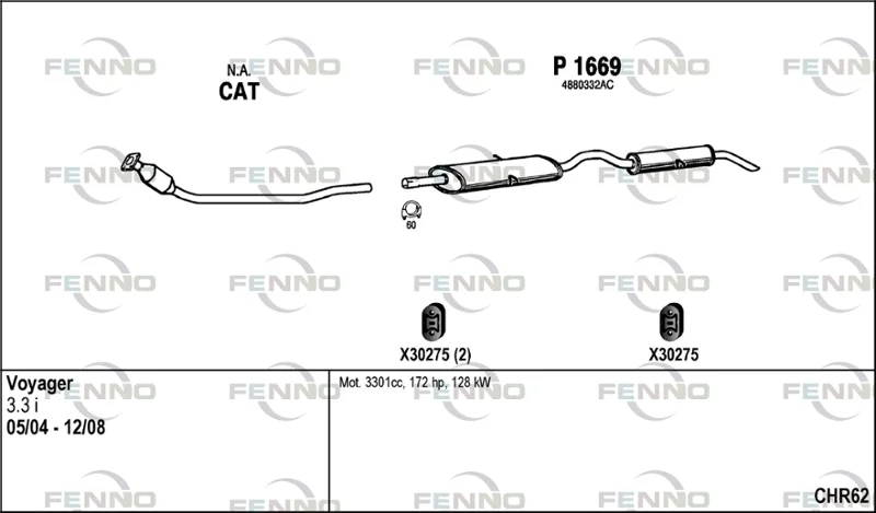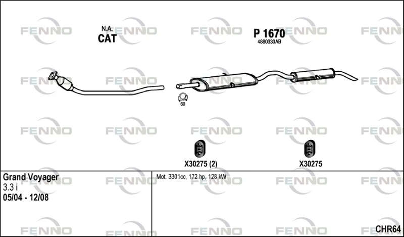 CHRYSLER VOYAGER IV (RG, RS) 3.3 - Výfukový systém - kompletní od 2/2000 do 12/2008, 3301 ccm, 128 kW, 174 hp, EGA, EGM, velkoprostorová limuzína