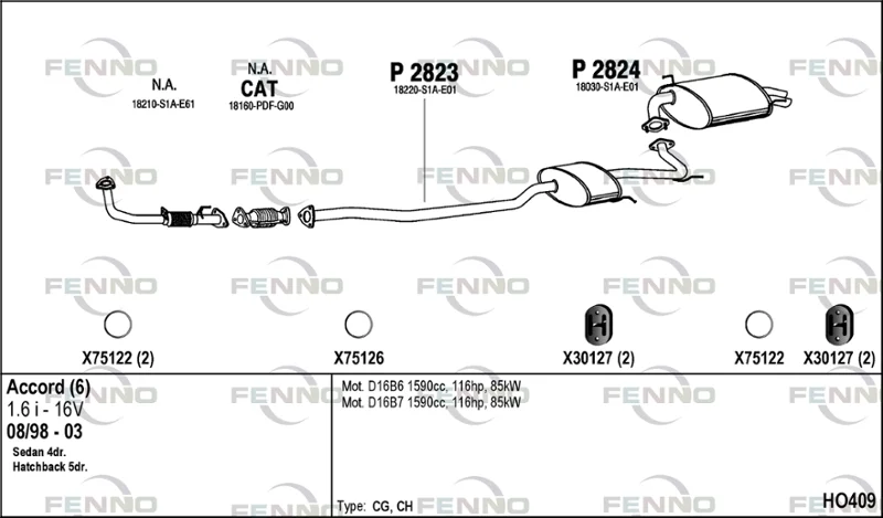 HONDA ACCORD VI (CK, CG, CH, CF, CL) 1.6 i (CG7) - Výfukový systém - kompletní od 10/1998 do 12/2002, 1590 ccm, 85 kW, 116 hp, D16B6, limuzína