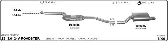 BMW Z3 kupé (E36) 3.0 i - Výfukový systém - kompletní od 6/2000 do 6/2003, 2979 ccm, 170 kW, 231 hp, M54 B30 (306S3), kupé