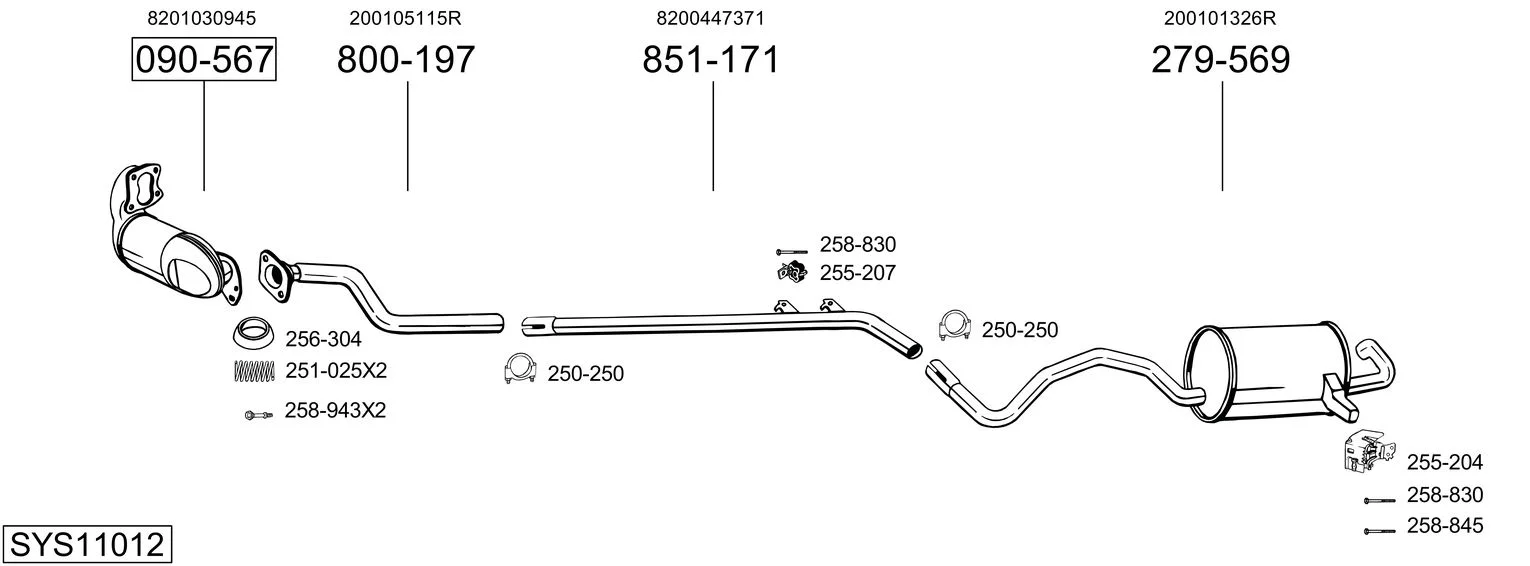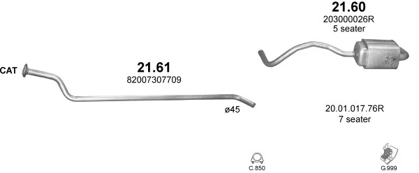 RENAULT MEGANE III Šikmá zadní část (BZ0/1_, B3_) 1.5 dCi - Výfukový systém - kompletní od 11/2008 do 8/2015, 1461 ccm, 63 kW, 86 hp, K9K 830, Šikmá zadní část