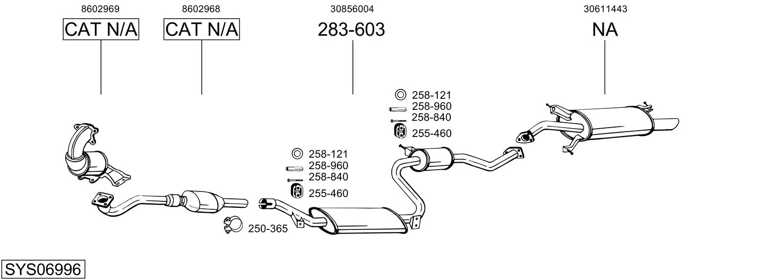VOLVO S40 I (644) 1.9 DI - Výfukový systém - kompletní od 7/2000 do 12/2003, 1870 ccm, 85 kW, 115 hp, D 4192 T3, limuzína