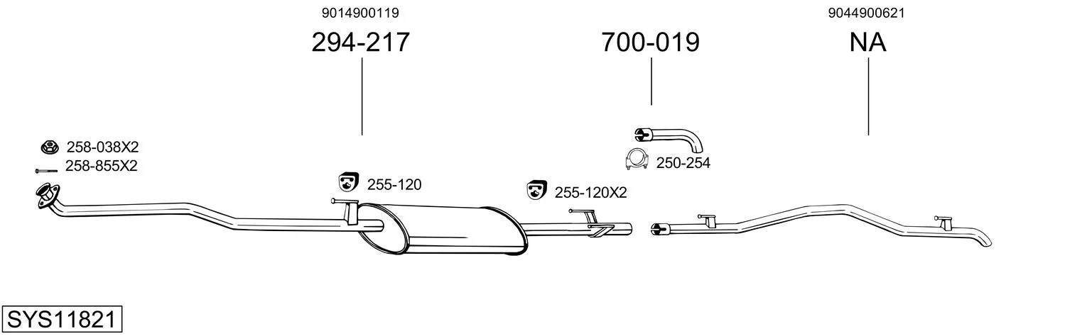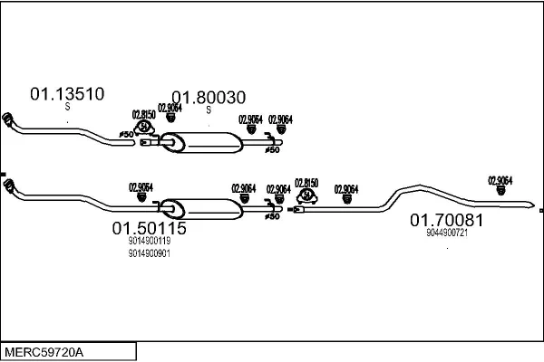 MERCEDES-BENZ SPRINTER 4-t valník/podvozek (B904) 408 D - Výfukový systém - kompletní od 2/1996 do 5/2006, 2299 ccm, 58 kW, 79 hp, OM 601.943, valník/podvozek