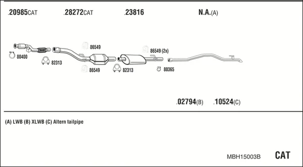 MERCEDES-BENZ SPRINTER 4-t Krabice (B904) 416 CDI 4x4 - Výfukový systém - kompletní od 4/2000 do 5/2006, 2685 ccm, 115 kW, 156 hp, OM 612.981, OM 647.981, Krabice