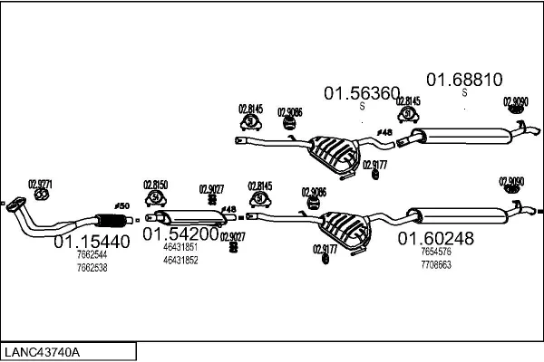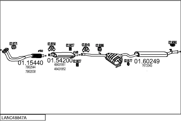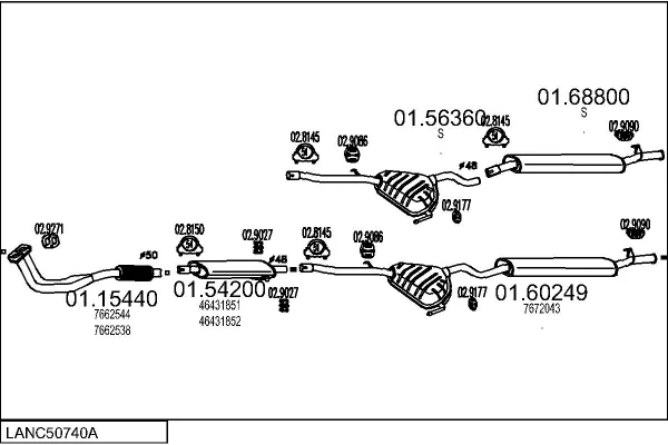 LANCIA DEDRA (835_) 2.0 i.e. (835AI) - Výfukový systém - kompletní od 9/1989 do 7/1992, 1995 ccm, 86 kW, 117 hp, 835 A5.000, limuzína