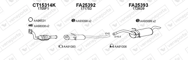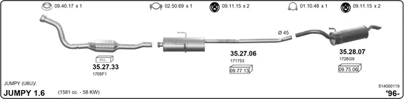 CITROËN JUMPY I Krabice (BS_, BT_, BY_, BZ_) 1.6 i - Výfukový systém - kompletní od 10/1995 do 8/2000, 1581 ccm, 58 kW, 79 hp, 1580 SPI, 220 A2.000, Krabice