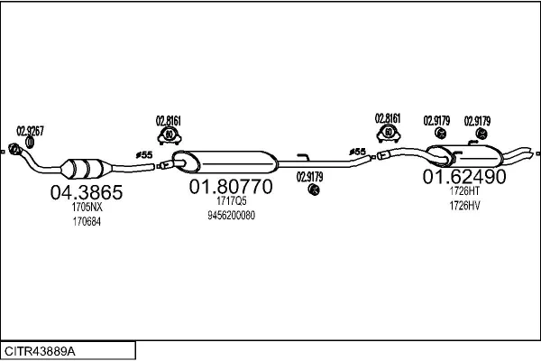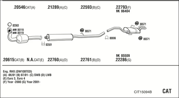 CITROËN JUMPY I Krabice (BS_, BT_, BY_, BZ_) 2.0 HDi 95 - Výfukový systém - kompletní od 10/1999 do 10/2006, 1997 ccm, 69 kW, 94 hp, RHX (DW10BTED), RHX (DW10BTED+), Krabice