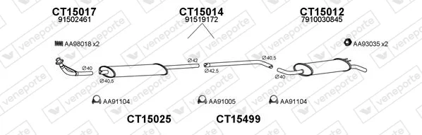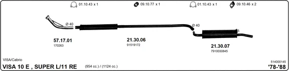 CITROËN VISA Kabriolet 11 RE - Výfukový systém - kompletní od 3/1983 do 10/1988, 1124 ccm, 37 kW, 50 hp, 109/5F, Kabriolet
