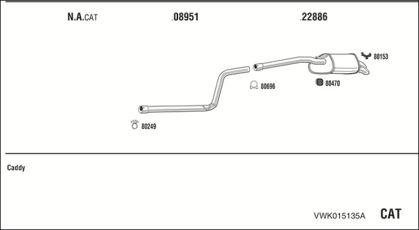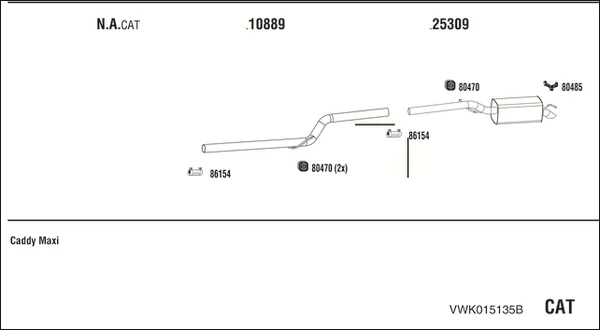 VW CADDY III velkoprostorová limuzína (2KB, 2KJ, 2CB, 2CJ) 2.0 TDI - Výfukový systém - kompletní od 8/2010 do 5/2015, 1968 ccm, 81 kW, 110 hp, CLCA, velkoprostorová limuzína