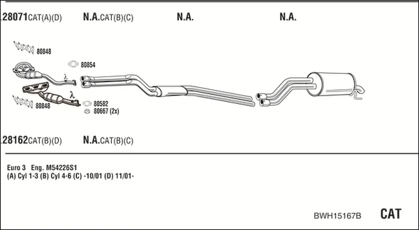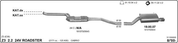 BMW Z3 Roadster (E36) 2.2 i - Výfukový systém - kompletní od 10/2000 do 6/2002, 2171 ccm, 125 kW, 170 hp, M54 B22 (226S1), Kabriolet