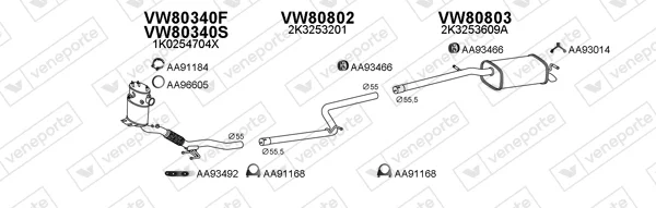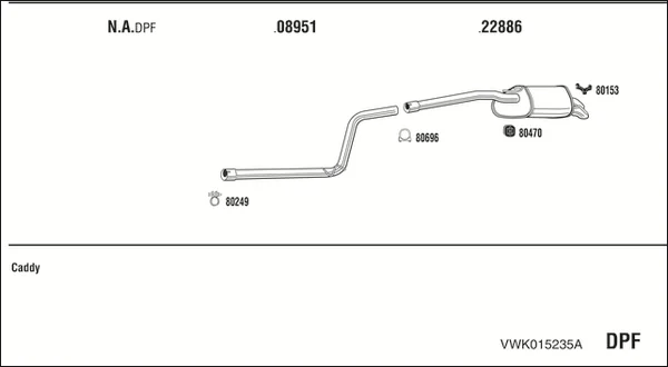 VW CADDY III Skříňová/velkoprostorová limuzína (2KA, 2KH, 2CA, 2.0 TDI - Výfukový systém - kompletní od 5/2012 do 5/2015, 1968 ccm, 125 kW, 170 hp, CFJA, Skříňová/velkoprostorová limuzína