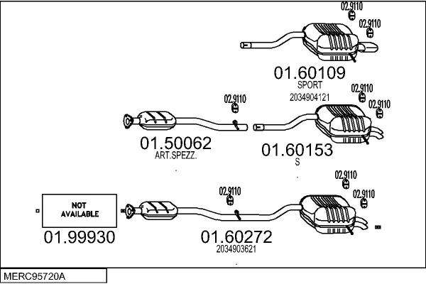 MERCEDES-BENZ C-CLASS kupé (CL203) C 180 (203.735) - Výfukový systém - kompletní od 3/2001 do 5/2002, 1998 ccm, 95 kW, 129 hp, M 111.951, kupé