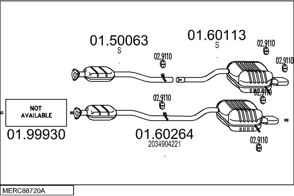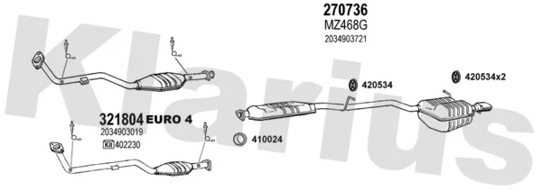 MERCEDES-BENZ C-CLASS kupé (CL203) C 200 Kompressor (203.745) - Výfukový systém - kompletní od 3/2001 do 5/2002, 1998 ccm, 120 kW, 163 hp, M 111.955, kupé