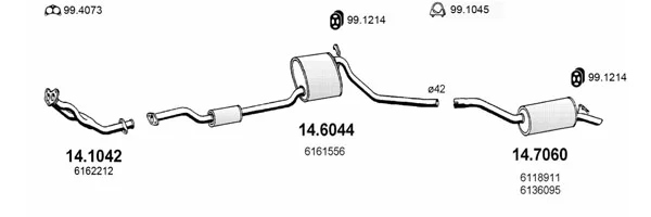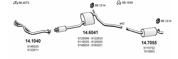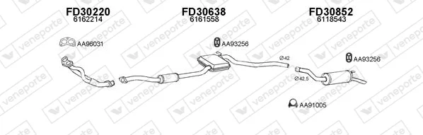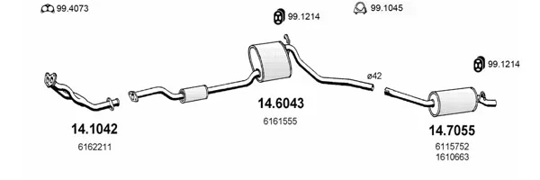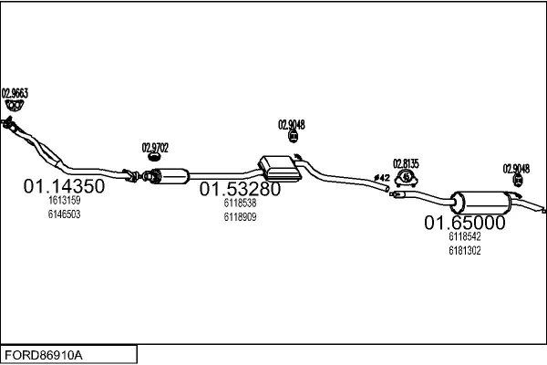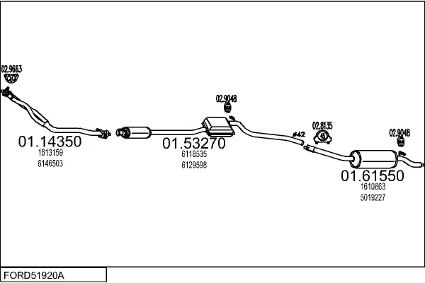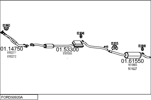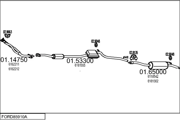 FORD SIERRA Turnier (BNC) 1.6 - Výfukový systém - kompletní od 8/1982 do 12/1986, 1593 ccm, 55 kW, 75 hp, LCS, LCT, LSD, kombi