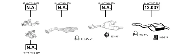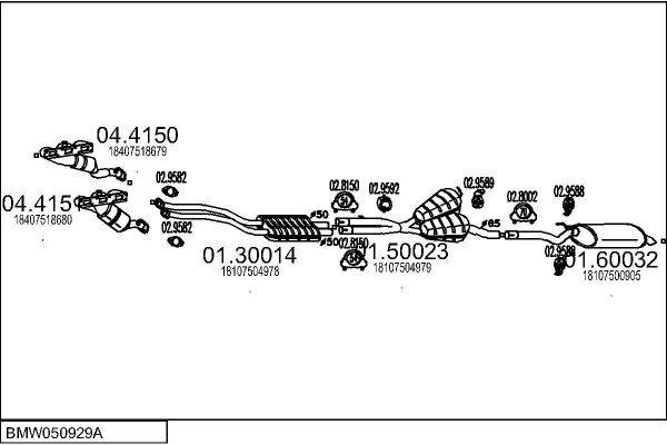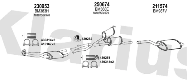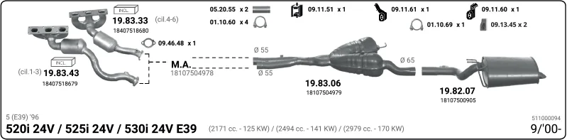BMW 5 (E39) 525 i - Výfukový systém - kompletní od 9/2000 do 6/2003, 2494 ccm, 141 kW, 192 hp, M54 B25 (256S5), limuzína