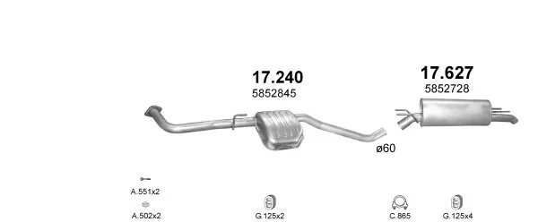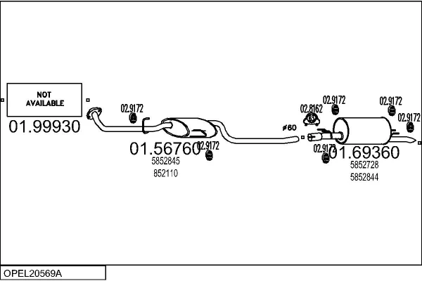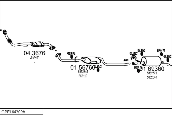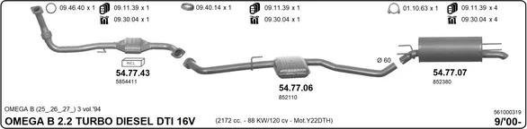 OPEL OMEGA B (V94) 2.2 DTI 16V (F69, M69, P69) - Výfukový systém - kompletní od 9/2000 do 7/2003, 2171 ccm, 88 kW, 120 hp, Y 22 DTH, limuzína