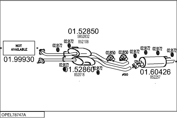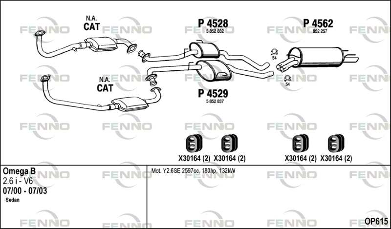 OPEL OMEGA B (V94) 2.6 V6 (F69, M69, P69) - Výfukový systém - kompletní od 9/2000 do 7/2003, 2597 ccm, 132 kW, 180 hp, Y 26 SE, limuzína