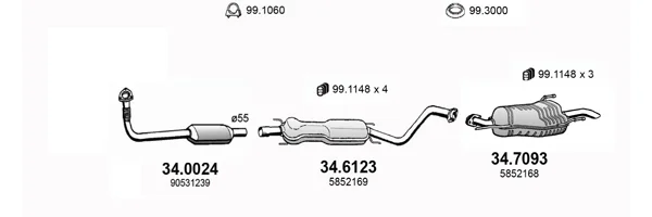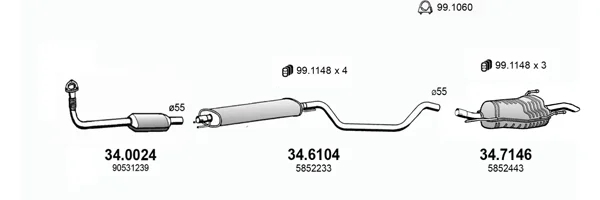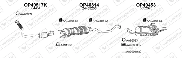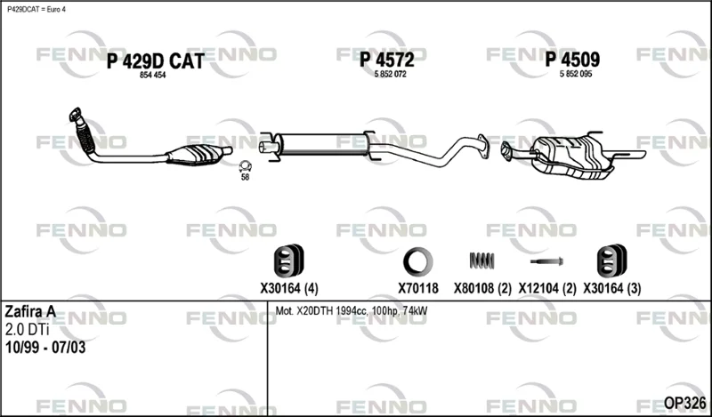 OPEL ZAFIRA A velkoprostorová limuzína (T98) 2.0 DTI 16V (F75) - Výfukový systém - kompletní od 9/2000 do 6/2005, 1995 ccm, 74 kW, 101 hp, Y 20 DTH, velkoprostorová limuzína
