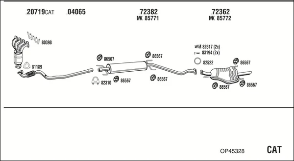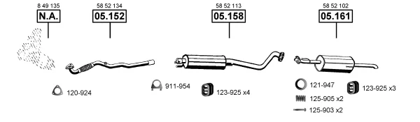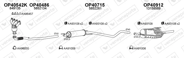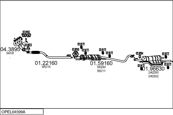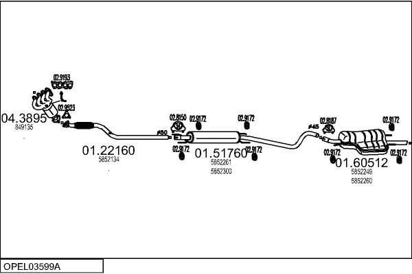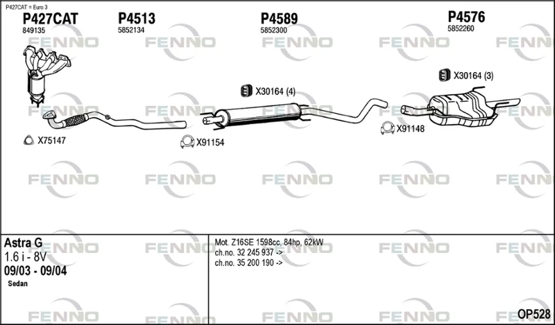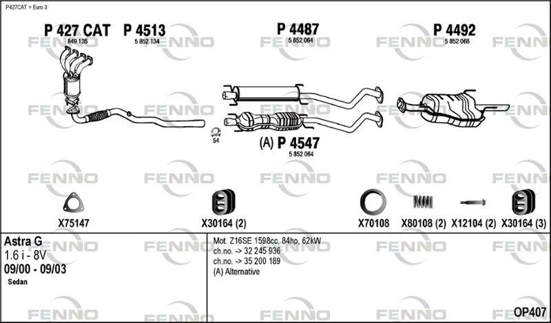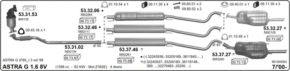 OPEL ASTRA G limuzína (T98) 1.6 (F69) - Výfukový systém - kompletní od 9/2000 do 1/2005, 1598 ccm, 62 kW, 84 hp, Z 16 SE, limuzína
