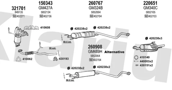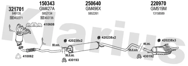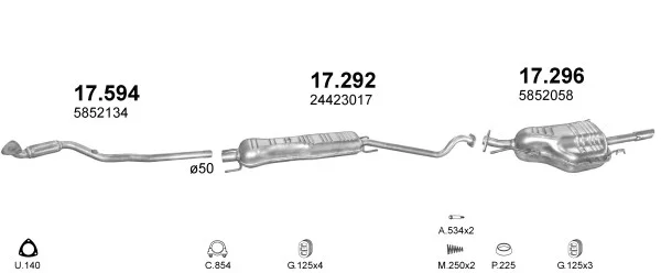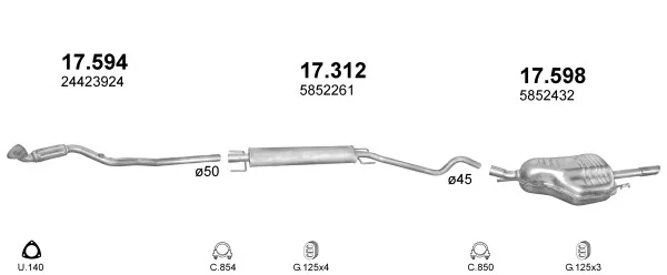 OPEL ASTRA G limuzína (T98) 1.6 (F69) - Výfukový systém - kompletní od 9/2000 do 1/2005, 1598 ccm, 62 kW, 84 hp, Z 16 SE, limuzína