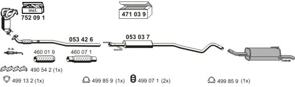 OPEL ASTRA G kombi (T98) 1.2 16V (F35) - Výfukový systém - kompletní od 9/2000 do 7/2004, 1199 ccm, 55 kW, 75 hp, Z 12 XE, kombi