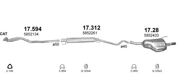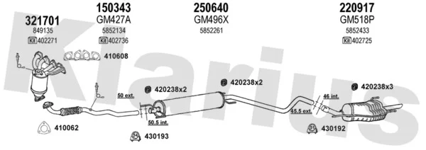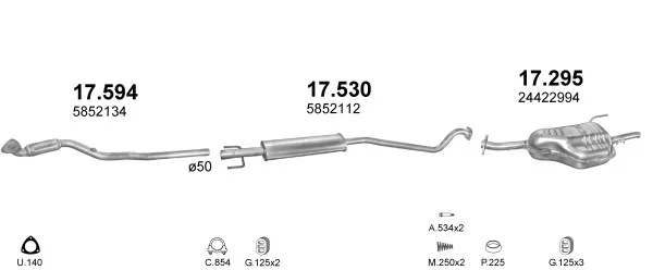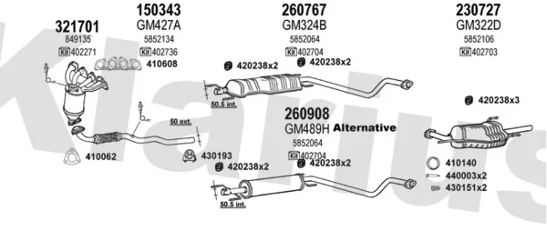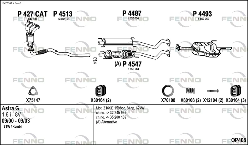 OPEL ASTRA G kombi (T98) 1.6 (F35) - Výfukový systém - kompletní od 9/2000 do 7/2004, 1598 ccm, 62 kW, 84 hp, Z 16 SE, kombi