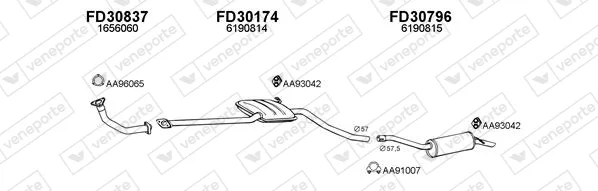 FORD SIERRA II Turnier (BNG) 1.8 TD - Výfukový systém - kompletní od 8/1988 do 2/1993, 1753 ccm, 55 kW, 75 hp, RFA, RFB, RFL, kombi