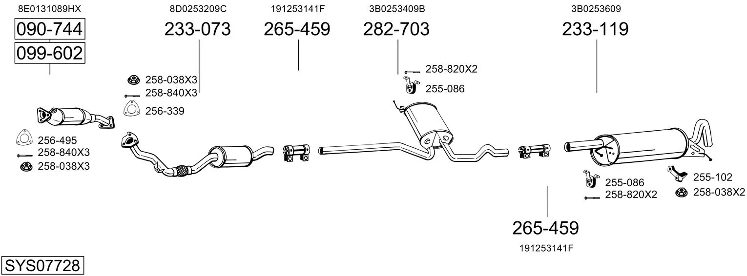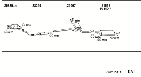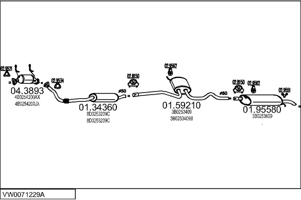 VW PASSAT B5.5 (3B3) 1.6 - Výfukový systém - kompletní od 11/2000 do 5/2005, 1595 ccm, 75 kW, 102 hp, ALZ, limuzína