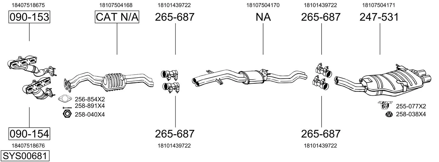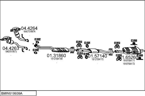BMW 3 (E46) 325 i - Výfukový systém - kompletní od 9/2000 do 2/2005, 2494 ccm, 141 kW, 192 hp, M54 B25 (256S5), limuzína