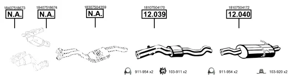 BMW 3 (E46) 325 xi - Výfukový systém - kompletní od 9/2000 do 2/2005, 2494 ccm, 141 kW, 192 hp, M54 B25 (256S5), limuzína