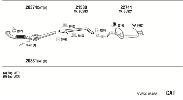 VW GOLF IV (1J1) 1.9 TDI - Výfukový systém - kompletní od 9/2000 do 6/2005, 1896 ccm, 74 kW, 101 hp, ATD, AXR, BEW, Šikmá zadní část